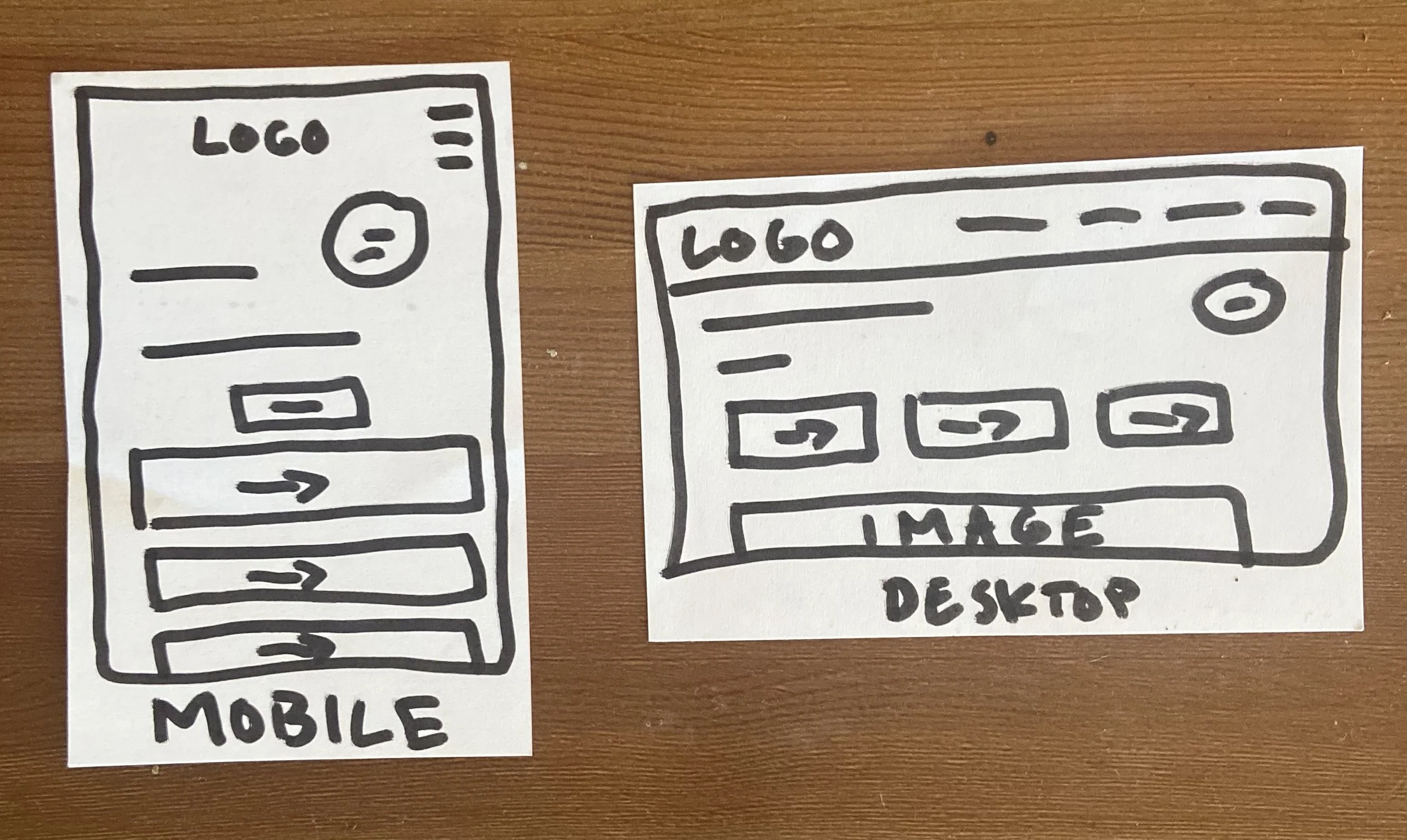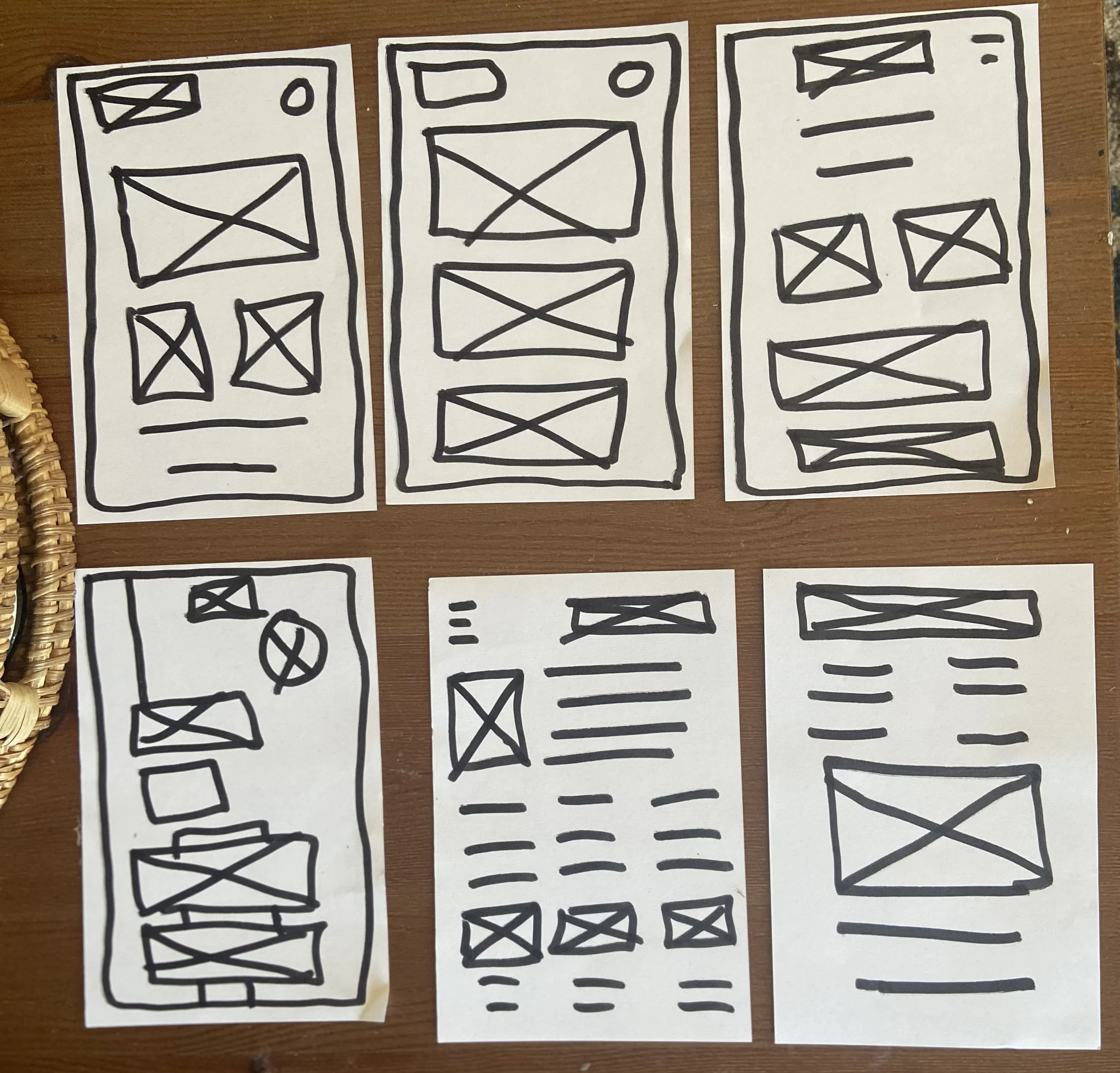 Early sketches and paper wireframes and planning the responsive design.