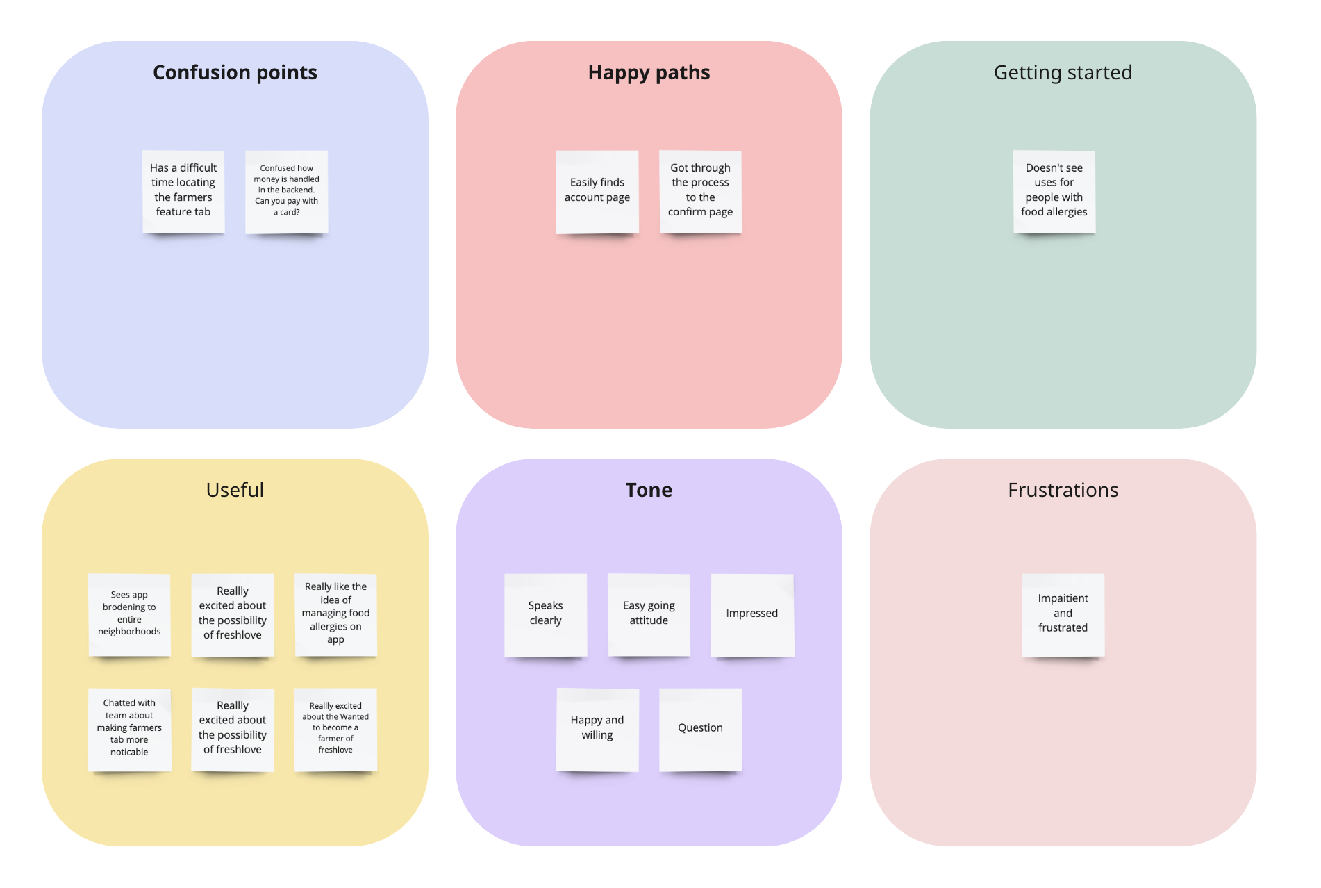 We wanted to make sure we consider accessibility and our users journey. We chose a diverse group for the user study to find new findings. We chose our target audience for the user study which is low income households including diverse and LGBT families, individuals of the older community and young adults. We conducted a unmoderated study, where the individual filled out a questionnaire. I conducted user interviews on the phone, which I then turned into empathy maps to better understand the target user and their needs. Finding that low income families find single page is an easy experience and like to try out the variety of fresh food they recieve. Our farmers use the app to keep track of seed shipments, harvest calendar and account and use less often. Buying fresh food continues to be very expensive and the supply chains supply grocery stores with all options all the time. We discovered this overwhelming and too many choices to and options, which sounds nice but turns into confusion challenging to decide.